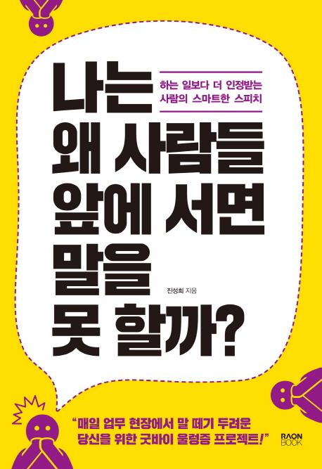 회사에서 사람은 크게 두 부류로 나뉜다. ‘성과보다 인정받는 사람’과 ‘성과에 비해 저평가 당하는 사람’ 두 부류의 차이는 ‘능력’이 아니라 바로 ‘말’이다. 모두가 이 사실을 알지만, ‘회사에서 말 잘하는 사람’이 되는 것은 남 앞에서 입도 못 떼는 사람들에게는 꿈도 못 꿀 일이다. 시중에는 ‘화술법’이나 ‘말의 공식’이 넘쳐나지만, 사람이 적든 많든 긴장으로 머릿속이 백지가 되는 사람들에게는 아무 소용이 없다.