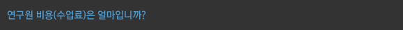 해외 연수비를 포함한 연구원 활동비는 연구원 합격 시점에 납부합니다. 연구원 활동비는 매해 공지하는 연구원 모집 요강에서 확정됩니다.